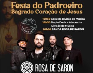 A tradicional Festa do Padroeiro Sagrado Coração de Jesus, em Paulínia, contará com a participação especial da banda Rosa de Saron. A apresentação será no dia 27 de junho (sexta-feira), a partir das 20h30, no espaço ao lado do Teatro Municipal, no bairro Parque Brasil 500.