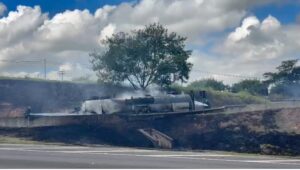 Apesar da gravidade da ocorrência, não houve vítimas. O motorista conseguiu sair da cabine a tempo, antes que as chamas se alastrassem.