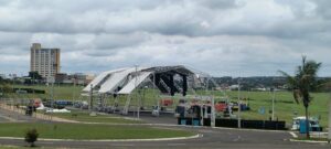 Parte da estrutura caiu durante temporal na noite de quinta-feira (1º); ninguém ficou ferido e Prefeitura decidiu encerrar o evento por segurança