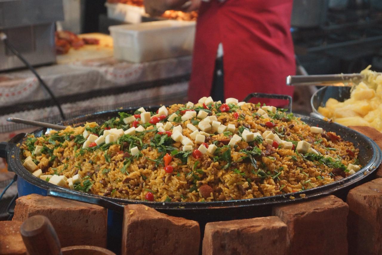 Além disso, o cardápio inclui pratos típicos consagrados, como costela fogo de chão, arroz carreteiro, feijão tropeiro, baião de dois e galinhada, valorizando sabores tradicionais da culinária brasileira.