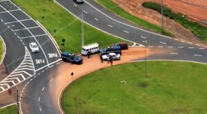 Durante as diligências, o automóvel foi encontrado e abordado na Avenida Presidente Juscelino Kubitschek, nas proximidades da rotatória da Prefeitura. No momento da abordagem, o veículo era conduzido por um terceiro, que informou aos agentes que o carro pertencia a outro indivíduo que seguia em um veículo à frente.