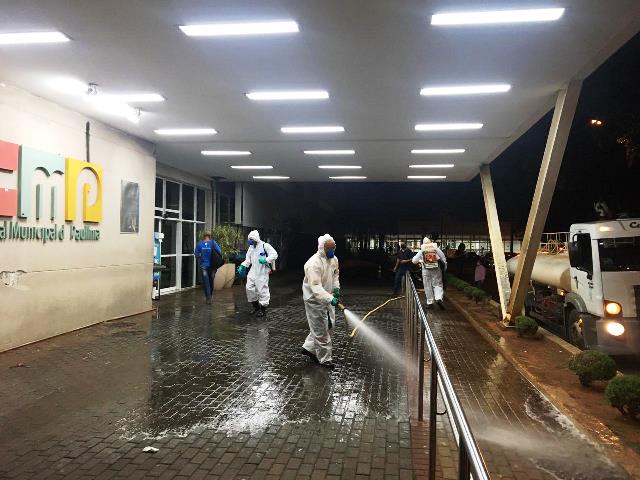O Hospital Municipal de Paulínia passa por uma desinfecção da área externa e interna de grande circulação do Pronto Socorro para prevenir possíveis contágios da Covid-19, já que a unidade está recebendo pacientes com o diagnóstico da doença.